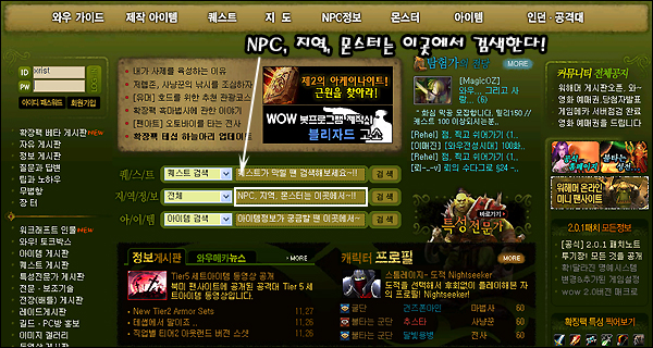 와우메카의 검색 시스템은 퀘스트, NPC, 지역, 몬스터, 아이템 등을 쉽게 검색하여 정보를 볼 수 있다. 적극적으로 활용하여 와우 및 확장팩에 관한 모든 궁금증을 해소하자.