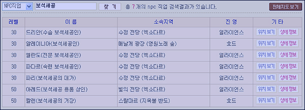 ▲ 위와 같은 화면이 나오며 보석세공NPC 관련 정보를 볼 수 있다