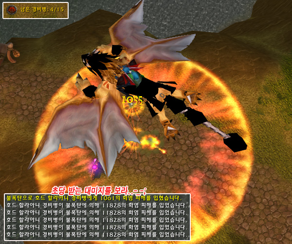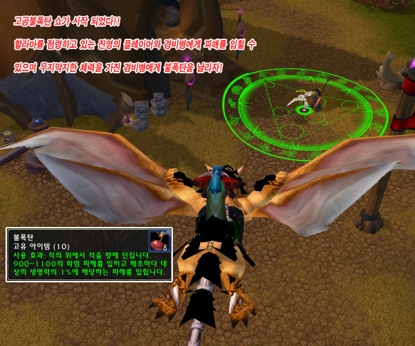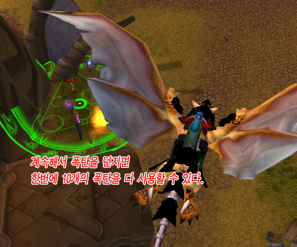 클릭하면 바로 전투 와이번에 탑승하며 자동으로 불폭탄 10개를 받을 수 있다. 전투
