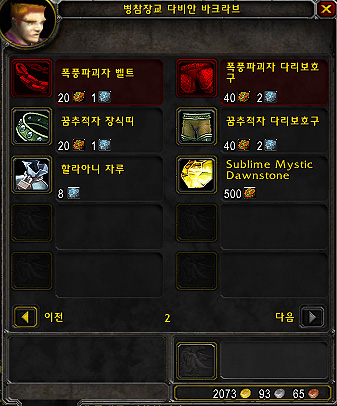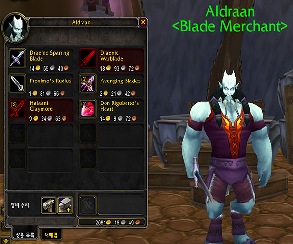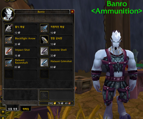 ▲ 탄약 상인 (최소 레벨 66이상의 탄약 및 화살을 판매한다. 초당 38.5의 피해 추가) |