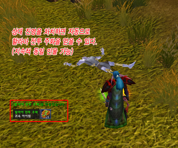 ▲ 주변 파티원이 있다면 모두 할라아 전투 주화 1개씩을 얻는다 |