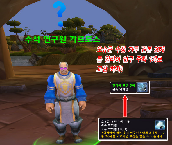 나그란드 전 지역에서 사냥을 통해서 얻을 수 있는 오슈군 수정 가루 견본은 그 갯수가 20개가 됐을 때 할라아 마을 NPC에게 보고하면 할라아 연구 주화 1개로 교환 할 수 있다. 물론 해당 진영이 할라아 마을을 점령하고 있어야 교환 가능! (추가로 6100의 경험치 획득)