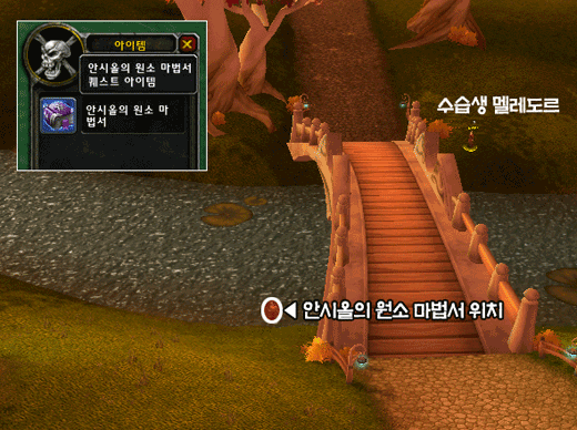 - 안시올에게 원소 마법서를 건네주자