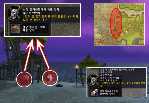이 2개의 퀘스트를 완료하였으면, 벨렌드레스 화이트몬에게 돌아가 `잃어버린 무기` 퀘스트를 완료하고 [버림받은 자들의 우두머리]퀘스트를 받자. 이 후 다시 해돋이 부두로 돌아가 건물 최상층에 있는 광기의 알다론을 처치하고 `성난비늘멀록의 약탈!` 퀘스트를 진행하자. 그리고 성난비늘멀록은 랜덤하게 [선장 켈리센드라의 잃어버린 항해도]퀘스트 아이템을 주니 잊지 말고 퀘스트를 진행하자.
