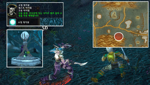 ▲ 나이트 엘프에게서 수정 제어봉을 빼앗아 달의 수정을 정지시키자