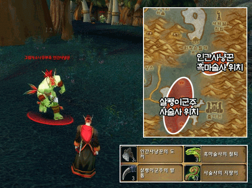 - 그림자소나무부족 흑마술사, 인간사냥꾼을 각 8마리 처치