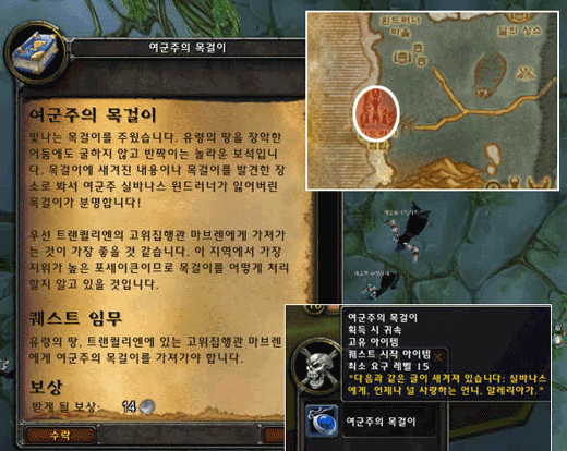 - 여군주의 목걸이를 실바나스 윈드러너에게 배달