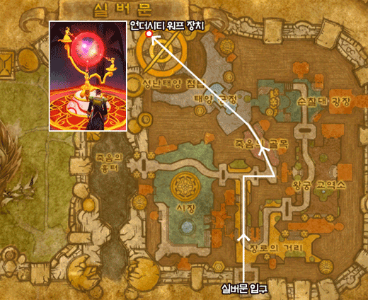 마브렌에게 이 목걸이를 건네주면 [언더시티 여행]퀘스트를 받을 수 있다. 이 퀘스트를 받았다면 실버문으로 가서 성난태양 첨탑으로가 언더시티로 워프를 하자. 그런 뒤 언더시티 왕실에 가 실바나스에게 이 목걸이를 건네주자. 그러면 실바나스의 노래 이벤트를 볼 수 있으며 그 이벤트가 시작되면 실바나스 왼쪽에 있는 사절 선소로우에게서 [공동묘지로 배달]퀘스트를 받을 수 있다. 공동묘지로의 이동 후 은빛소나무숲의 퀘스트를 할 수 있다. (`배신자의 파멸` 퀘스트를 하기에 레벨이 부족하다면 이곳에서 레벨 업을 하는 것도 한가지 방법이다)