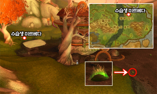 ▲ 수습생 미르베다의 위치는 여기!, 견본은 이렇게 생겼다!