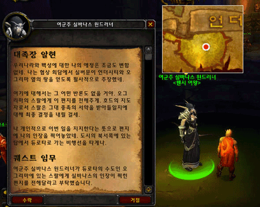 - 언더시티의 실바나스 윈드러너와 대화