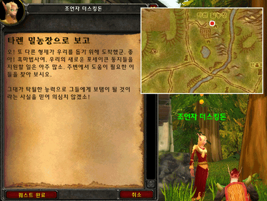 - 타렌 밀농장에 있는 조언자 더스킹돈과 대화
