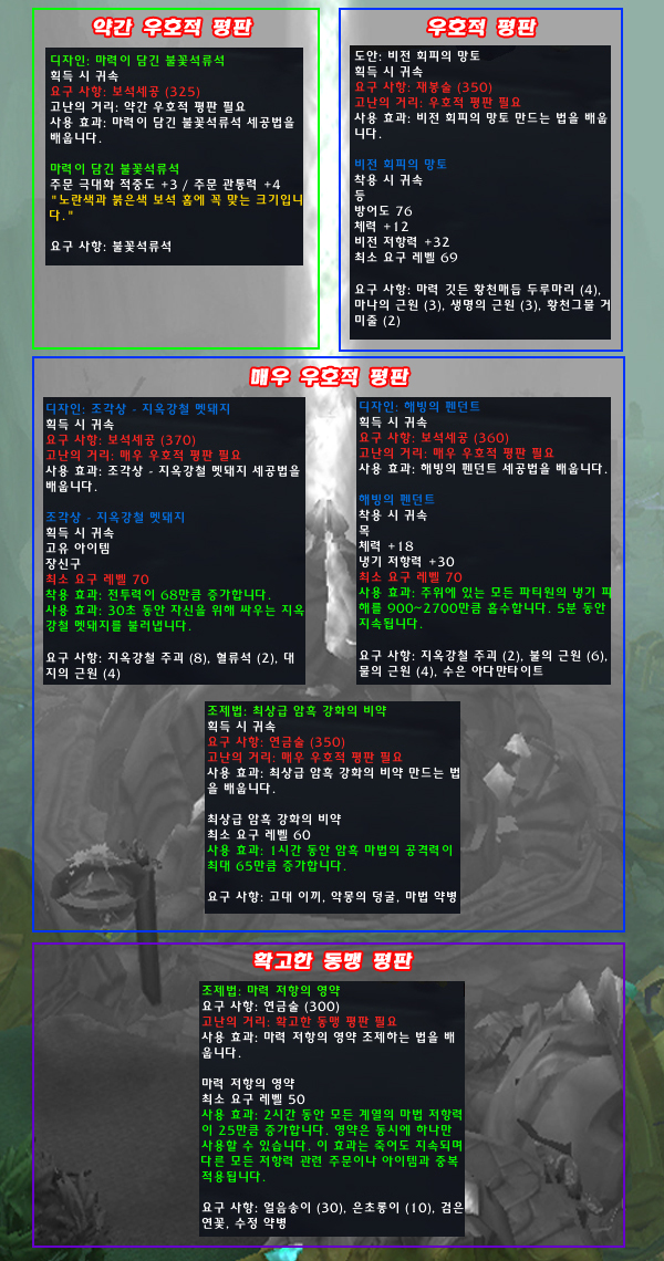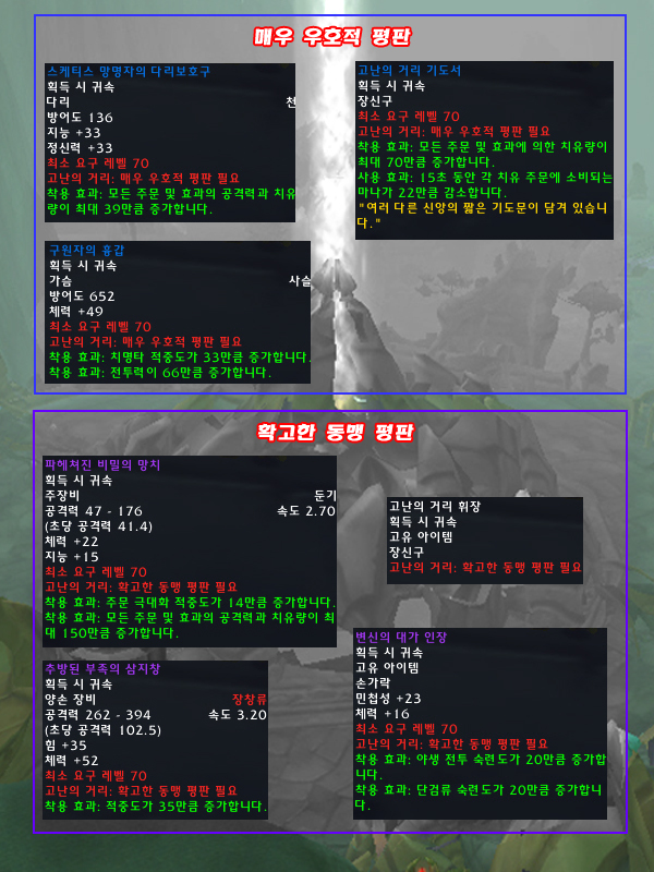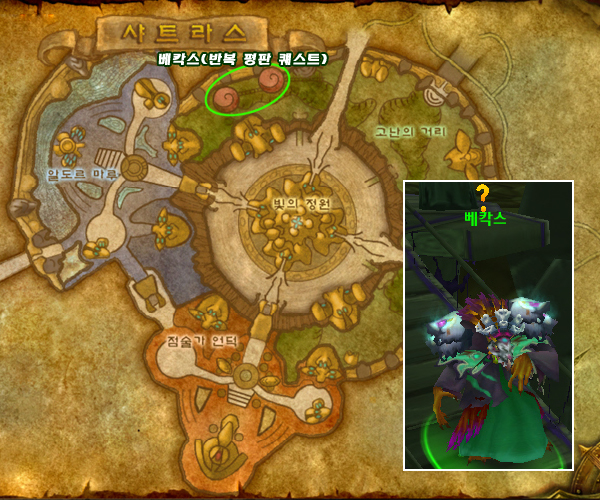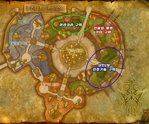 글: 스톰레이지서버 "프라가라흐" ------------------------------------------------------------------------------------------------------------------------ 지옥불 반도의 남쪽, 테로카르 숲에 자리 잡고 있는 샤트라스는 4가지의 평판을 보유한 진영이 공존하는 아웃랜드의 유일한 대도시이다. 빛의 정원의 나루들과 관련된 샤타르 평판, 빛을 섬기는 드레나이와 관련된 알도르 사제회 평판, 켈타스에게 반기를 들고 나루에게 항복한 블러드엘프와 관련된 점술가 길드 평판, 그리고 마지막으로 아웃랜드의 피난민들이 모여있는 고난의 거리의 평판. 이런 복잡한 구도의 평판 중 가장 특이한 구성을 띄고 있는 것이 바로 고난의 거리 평판이다.