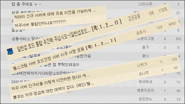 유저들은 지금 블리자드 코리아에게 대동강물을 팔아먹은 봉이 김선달은 장사수완을 기대하는 건 아닐 겁니다. 하지만, 현재 호드와 얼라이언스 비율이 두 배가량 넘어가는 상황에서 서버간 이동은 결국 미봉책에 불과하다는 사실을 말하고, 입 막음식 단기 대책보다는 장기적으로 기대할 수 있는 방안을 듣고자 하는 겁니다.