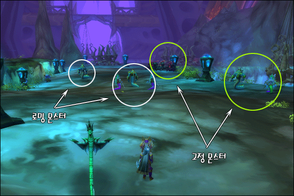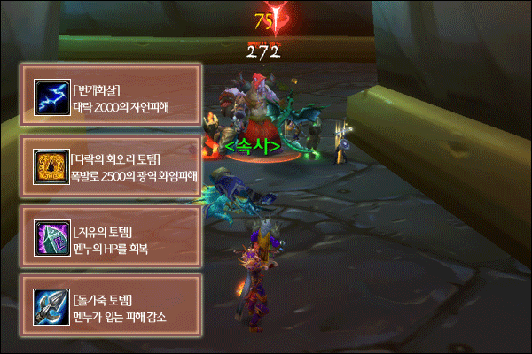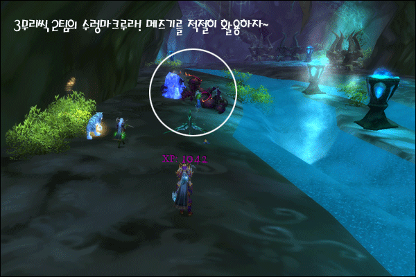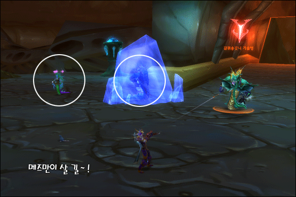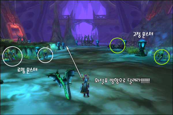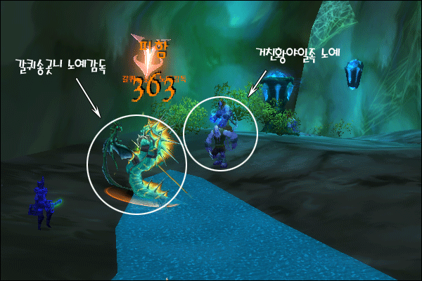 우리가 가려는 길을 조심스레 가면 나가 무리가 애드되지 않기 때문에 잡지 않고 멘누만 풀링해서 뒤쪽에서 잡도록 한다. 멘누는 주술사 클래스로 토템 3종을 사용하며 번개화살을 시전해 대략 2000의 자연피해를 준다.