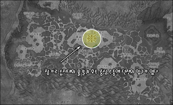 장가르 습지대의 인던은 총 4개가 있으며 그 중 3개는 5인 인던, 1개는 `여군주 바쉬`가 있는 공격대 인던인 `불뱀 제단`이다. 이 네 인던이 있는 곳을 통틀어 갈퀴송곳니 저수지라 하는데 입구는 장가르 습지대의 중앙 물갈퀴 호수 중앙에 있으며 잠수를 통해 입장한다. 들어가는 도중 산소가 나오는 구간이 있기 때문에 숨이 막혀 죽을 일은 없으니 안심하자.