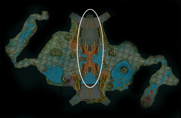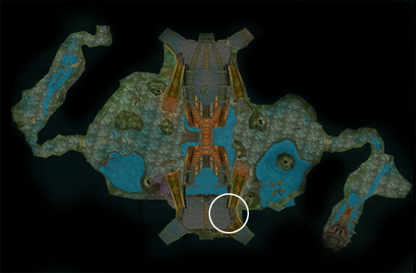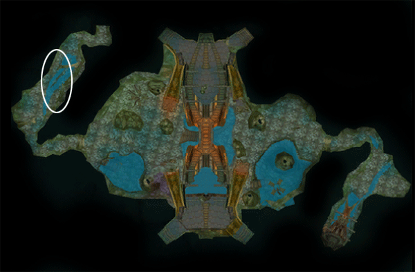 위의 맵에 표시된 지역으로 헤엄을 쳐서 가면 물 밑에 아래 그림과 같은 장면을 볼 수 있다. 이곳이 인던의 입구다. 잠수~!
