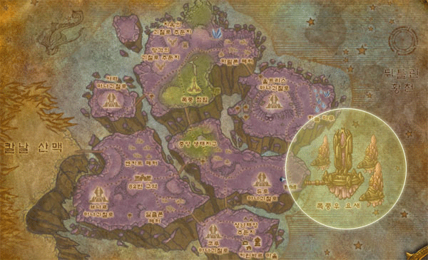 `폭풍우 요새` 아웃랜드 황천의 폭풍 동쪽에 위치한 고대 나루의 건축 양식을 지닌 신비로운 공중 구조물. 그곳은 3개의 5인용 던전(메카나르, 신록의 정원, 알카트라즈)과 1개의 25인용 공격대 던전(폭풍우 요새-The Eye)등 4개의 인스턴스 던전으로 이루어져 있습니다. 이 4곳 모두 하늘을 나는 탈것이 있어야 입장할 수 있습니다.