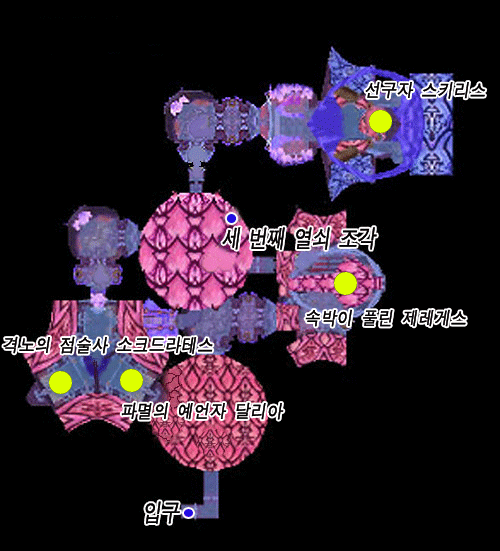 이곳은 일반 모드의 인던 중 가장 난이도가 높은 인던이며 인간형, 악마형, 기계형, 에테리얼형, 곤충형, 야수형, 정령형, 용족 등 상당히 다채로운 종류의 악당들과 조우하게 되는 곳입니다. 이곳은 "양보다 질"로 승부하는 인던으로써 몬스터 하나하나가 강력하고 특유의 기술을 사용하므로 "모든 몬스터의 보스화"가 이루어진(^^;) 인던이라 할 수 있습니다. 여타 인던에서 강조되던 "메즈 후 점사" 보다는 각 몬스터들의 특징을 잘 파악하여 그에 맞게 대응하는 공략이 좋은 곳입니다.