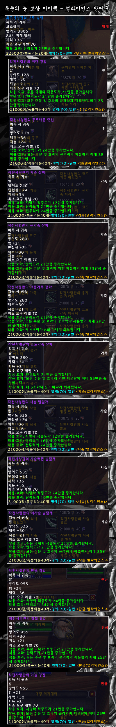 기존의 3대 전장은 각 전장의 입구가 필드에 있으며 명예 점수 보상 아이템과는 별개로 각 전장에 해당하는 평판과 고유 보상 아이템이 존재합니다. 하지만 폭풍의 눈은 평판과 고유 보상 아이템이 없으며 오직 폭풍의 눈 훈장과 명예 점수로 살 수 있는 명예 보상 아이템만이 존재합니다. 명예 보상 아이템은 스톰윈드와 오그리마의 명예의 전당에서 구입 가능합니다.