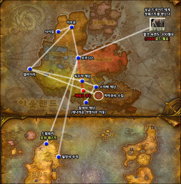 나온다 안 나온다. 소문만 무성했던 드루이드 폭풍 까마귀(280%)퀘스트가 2.1.0 테스트 서버에서 공개되었습니다. 하지만, 드루이드라고 해서 모두 가능한 퀘스트가 아니라 일단, 탈것 숙련 300(5000골드 필요)인 드루이드만 퀘스트를 받을 수 있기 때문에... 절망과 안도의 복합적인 한숨이 여기저기 터져나올 것 같군요.  물론, 전 절망입니다. -_-;;