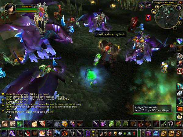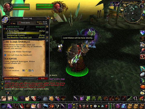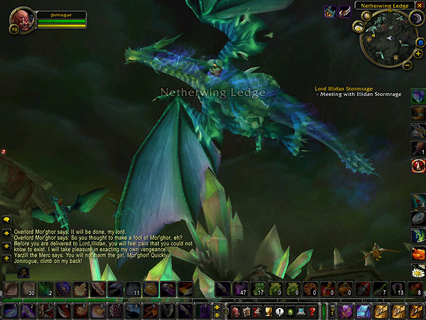 황천의 용군단의 평판이 확고한 동맹이 되면 Lord Illidan Stormrage (`군주 일리단 스톰레이지` 로 추측)라는 퀘스트를 받을 수 있다. 퀘스트를 받으면 일리단이 등장하고 플레이어에게 깜빡 속았던 모르호르를 호되게 야단친다. 자신이 속은 것을 알게 된 모르호르는 플레이어를 처치하려 한다. 하지만 플레이어는 황천의 비룡으로 변신한 용병 야르질에 의해 구출되고 유유히 샤트라스로 가서 황천의 비룡을 얻는다.