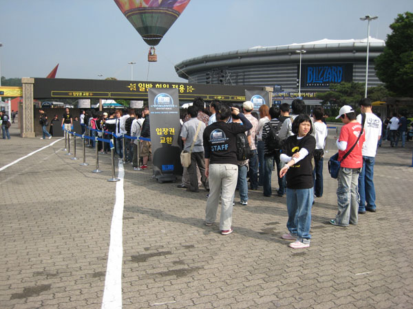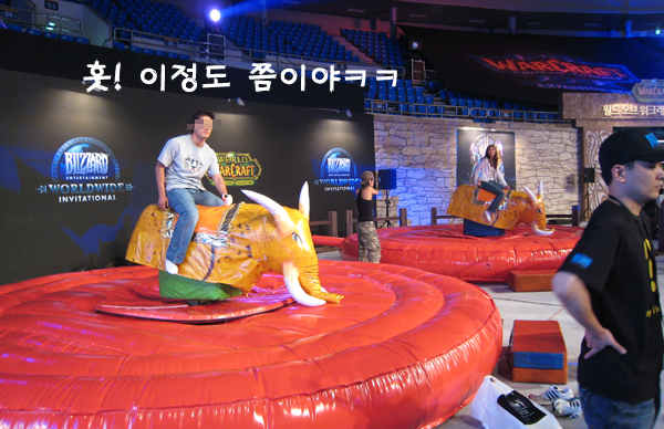 한 가지 아쉬운 점은 블리자드샵에 있는 물품들은 공급이 원활하지가 않아 물품을 받기까지 많은 시간이 소요된다는 것입니다. 또, 수량이 한정되어 있기때문에 아침에 재빨리 사지 않으면 오후에는 원하시는 물품을 살수 없습니다. 물건을 사고자 한다면 꼭 아침에 오셔서 한얼광장, 펜싱경기장, 체조경기장에 배치된 블리자드 샵을 먼저 찾으세요. 저 역시 첫째 날은 사지 못했습니다. -_-;; 둘째 날 블리자드샵을 기웃거리는 저를 보게되실지도 모르겠습니다. 첫째 날 풍경을 종합해보자면, WWI 행사장 분위기는 대체로 좋았습니다. 행사 곳곳에 도우미들이 있어 모르는 곳을 쉽게 안내 받을 수 있었고, 행사장안과 밖으로 다양한 이벤트가 열려서 WWI참여하신 많은 분들이 다양한 경험을 하실 수 있었습니다. 입장권 뒤편에 있는 5가지의 퀘스트가 와우저 분들의 퀘스트 수행욕구를 자극하셨을 수도 있겠군요 ^^; 작년 WWI보다 훨씬 더 큰 규모의 행사였지만, 별 사고 없이 무난하게 진행되었고, 워낙 사람이 많아 기다림은 지루했지만, 이벤트에 참여한 모든 분들의 얼굴에서 즐거운 표정을 엿볼 수 있었습니다. 폐회식에는 가수 싸이님과 아이비님 나와 마지막을 화려하게 장식한 예정이오니 올림픽공원 근처에 사시는 분들은 꼭 놀러와 주세요 ^^