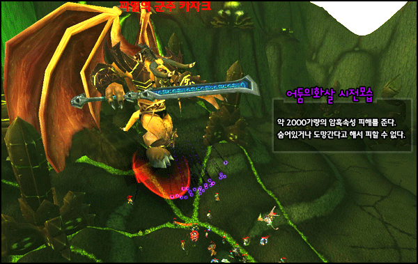 2000 대미지를 주는 어둠의 화살을 다발로 발사한다. 피할