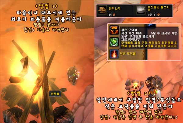 요리와 낚시를 함께 375 숙련까지 올리기 위해 걸리는 시간은 결코 적지 않지만 끝까지 올린 만큼의 보람도 크다. 제작한 요리 중 내가 잘 쓰지 않지만 좋은 효과를 가진 것들은 다른 이들에게 선물하거나 경매장에 적당한 가격에 올리는 것도 나쁘지 않다. 요리와 낚시를 끝까지 마스터한 사람이 드물거나, 올리는 과정이 막막해서 기술 자체를 익히지 않은 유저들이 생각보다 많기 때문이다. 또한 낚시의 경우 전쟁 서버에서는 저 레벨 시절부터 올리기엔 다소 위험한 부분도 없지 않다. 낚시찌의 움직임에 집중하다 보면 적 진형의 접근을 눈치채지 못하는 경우가 많기 때문이다.