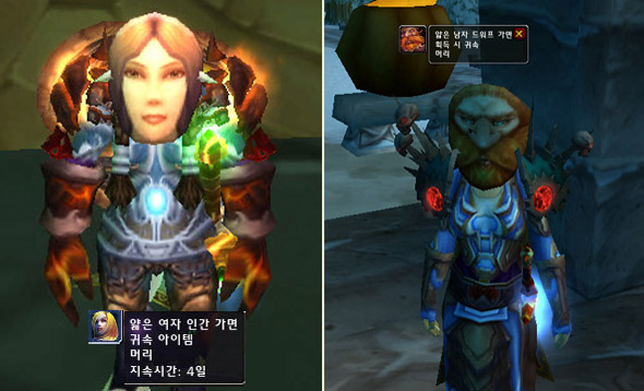 얇은 여자 인간 가면과 얇은 남자 드워프 가면. 지속시간이 7일밖에 안된다
