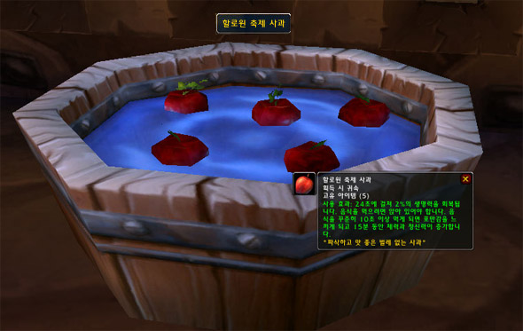 더불어 여관에 위치한 사과가 담겨있는 통을 클릭하면 할로윈 축제 사과를 획득할 수 있다.