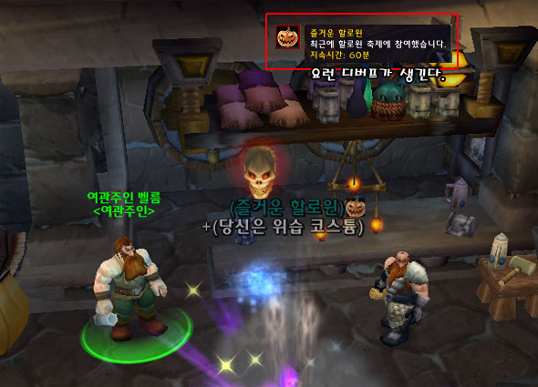 할로윈 이벤트 기간 동안 여관주인과 대화하면 할로윈 선물을 받을 수 있다.