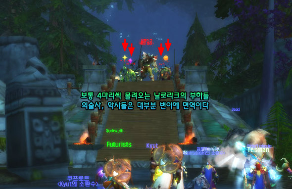 앞에서 언급했던 것처럼, 전투곰 탱커는 날로라크의 변신 즉시 빠르게 그 어그로를 자신의 것으로 가져와야만 하며 힐러들은 수단과 방법을 가리지 말고 탱커의 생존에 집중해야 한다.