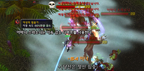 좀 더 이동하다 보면 어미 스라소니와 새끼 스라소니가 뭉쳐 다니는 모습을 볼 수 있다. 이 스라소니들은 야성의 휩쓸기라는 이속 80%감소 디버프를 걸고 질주로 자신에게 걸린 이속 감소 스킬을 풀어가면서 공격하기 때문에 광역 클래스가 눕기 쉽다. 광역 클래스는 생존에 주의하면서 처리하도록 하자. 새끼 스라소니의 체력도 생각보다 많은 편이여서 화력이 부족하면 힘들 수도 있다.