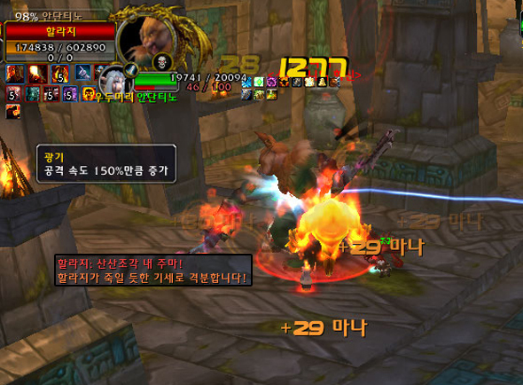 할라지와의 전투는 화신 상태의 할라지와 트롤 주술사+스라소니의 혼으로 분리된 할라지의 두 단계로 나눌 수 있다. 우선 스킬을 살펴 보도록 하자.