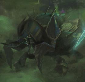 거미 군주들은 이들과 비교가 되지 않습니다. 이들의 키는 보통 5.5미터가량이며 딱정벌레처럼 튼튼한 검은 색의 껍질과 날개까지 갖추고 있습니다. 아마도 낙스라마스 거미 지구의 네임드 아눕레칸을 떠올려 보시면 될 겁니다. 네룹인의 여왕은 보는 것만으로도 압도당할 정도의 크기를 하고 있다고 하는데, 늙은 여왕은 그 몸으로 동굴을 가득 채울 정도라고 까지 합니다. 네룹인의 강력함은 그 크기로 판별할 수 있다고 하니, 여왕의 힘은 그야말로 압도적일 것입니다.