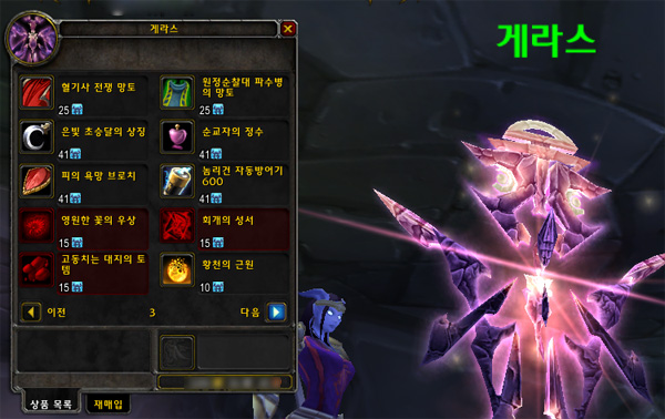 첫 번째 확장팩인 불타는 성전이 시작되면서 블리자드는 다양한 방식을 시도했습니다. 영웅 난이도의 던전이 도입되면서 영웅 난이도의 네임드들이 [정의의 휘장]을 드랍하도록 설정했고, 휘장을 사용하여 카라잔 수준의 아이템을 구입할 수 있게 했죠.