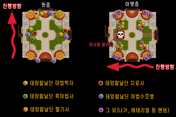 어느 부하들이 나오건 가장 중요한 점은 여사제 델리사가 힐러인 동시에 변이에 면역이라는 점입니다. 때문에 가장 먼저 점사할 대상은 델리사로 정하는 것이 가장 손쉽게 공략할 수 있는 방법입니다. 모든 매즈를 동원하여 다른 부하들을 따돌려 주고 델리사를 얼마나 빠르게 처치하느냐 하는 부분이 델리사 공략의 핵심입니다.