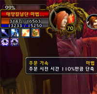 또한 주문 가속 버프가 걸려 있어서 마법 시전이 성공할 때 마다 주문 시전 속도가 10%씩 증가하는 버프효과를 받기 때문에 최대한 마법 시전을 방해하면서 처리하는 것이 좋습니다. 주문 가속 효과는 마법사의 마법 훔치기로 훔쳐올 수 있으며 모든 마법 해제 기술로 해제가 가능합니다. 다양한 스킬 때문에 전투가 복잡해질 수 있으니 매즈 후 마지막에 처리하는 것이 좋습니다. |