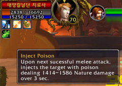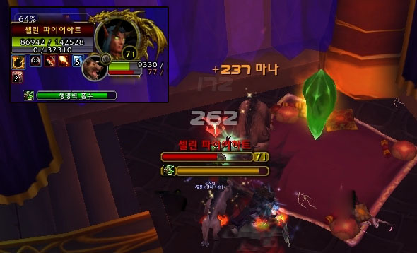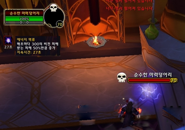 또한 탱커를 대상으로 생명력 흡수를 사용하는데, 대상에게 입힌 피해만큼 체력을 회복하므로 반드시 차단해야 합니다. 모든 마법 차단 효과(마법사의 마법 차단, 전사의 방패 가격, 주술사의 대지 충격 등)가 통하므로 빠르게 끊어주면 됩니다.