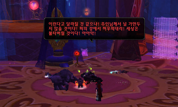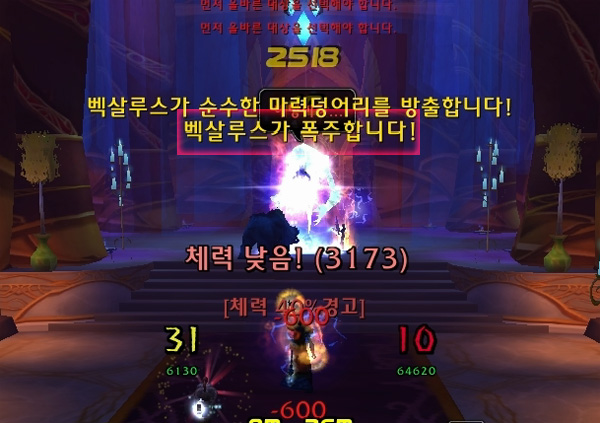 벡살루스와의 전투는 카라잔에서 만날 수 있는 전시 관리인과 비슷할 수도 있습니다. 전투 중간 중간에 순수한 마력덩어리라는 비전 구체를 소환하는 점이나 비전 속성의 공격이 주를 이루고 있다는 점은 확실히 비슷하죠.