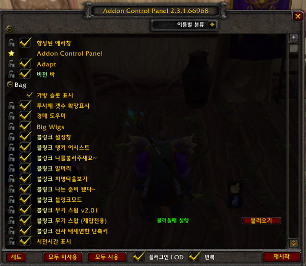 월드 오브 워크래프트를 더욱 편리하게 즐길 수 있도록 도와주는 애드온. 물론 과도한 애드온 사용은 게임의 재미를 해치거나 프레임 저하 등의 부작용을 불러올 수도 있습니다. 하늘아리를 비롯한 많은 애드온 모음집은 여러분께 애드온 사용의 기초를 알려드리는 안내서와 같은 역할이지 "이런걸 설치해서 사용해라"라고 정해주는 필수 사항은 아니라고 생각합니다. 설명을 조금만 살펴보고 오류를 잡아나가다 보면 자신의 입맛에 꼭 맞는 구성을 만드실 수 있리라 봅니다. 하늘아리를 사용하는 분들께, 그리고 애드온의 기초를 알아가는 분들께 이 글이 작은 도움이 되었으면 좋겠습니다.