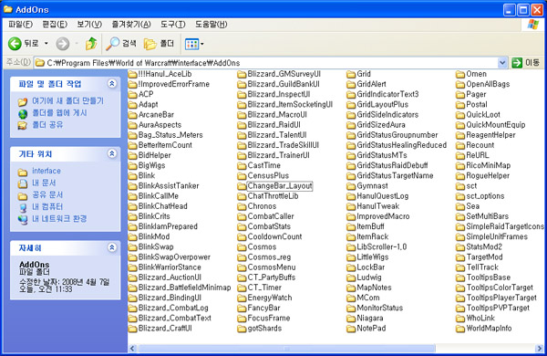 PC방에서 와우를 즐기는 분이라면 R군과 비슷한 상황, 한 번쯤은 겪어 보셨을겁니다. 특히 와우를 실행했는데 정신없이 뜨는 설정 창과 애드온 목록의 홍수에 자리를 옮겨서 플레이했던 분들도 계시겠죠. 인던의 중심에서 애드온 에러를 외치다 보면 /내보내기 당한 캐릭터를 발견할지도 모릅니다. 몇 분은 변화한 하늘아리를 사용하시면서 이런 상황을 겪으셨을지도 모르겠네요. 본문을 통해 새롭게 변화한 하늘아리를 어떻게 사용하면 좋을지에 대해 간략하게나마 설명을 드려 보겠습니다. ※본문은 하늘아리III Build 1.9을 풀버전으로 설치한 상황을 기준으로 드로아크님께서 작성하셨던 글타래를 참조하여 작성되었습니다. 하늘아리를 풀버전으로 설치했다면 와우가 깔려있는 위치의 애드온 폴더에는 아래와 같은 폴더가 생성되었을 것입니다. 와우를 실행하면 이곳의 폴더를 읽어서 애드온 리스트를 보여주게 되죠. 이곳의 폴더를 삭제하게 되면 해당 애드온을 삭제한 것이나 마찬가지이니 주의해야 합니다.