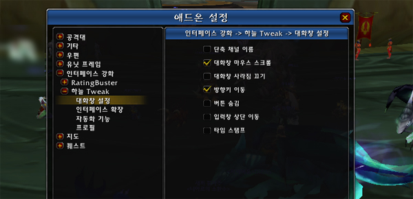 하늘 Tweak는 대화창 설정 및 인터페이스 확장 등의 기능을 도와주는 애드온입니다. 여기서는 대화창 관련 설정만 살펴보도록 하겠습니다.