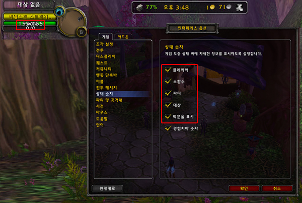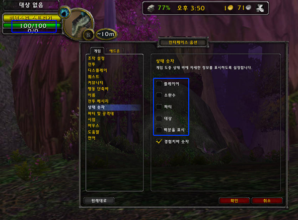 다만 대상의 체력/마나 바에 마우스 커서를 가져갔을 때 보이는 백분율 표시는 아직 해결할 수 없는 부분인 듯 합니다. 드로아크님의 답변을 빌리면 "원래대로라면 유닛프레임에서 마우스 업시에 나오는 수치 부분을 Hooking 해서 동작하지 않도록 해줘야하는데, 아마 그 부분이 없는듯 합니다"라고 하시네요.