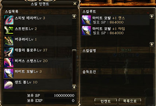 리니지2의 스킬 인챈트 역시 주문각인과 비슷한 효과를 보여줍니다. 특정 효과가 정해져서 상승하는 스킬 레벨의 상승과는 별개로 인챈트를 통하여 여러 효과들 중 사용자가 선택한 부분을 강화하는 방식이죠. 주문각인과 다른 점이라면 경험치와 함께 SP나 별도의 아이템이 필요하다는 것과 실패 확률이 존재한다는 부분일 것입니다. 또한 인챈트한 스킬 단계를 하나 내리고 소모했던 SP 일부를 돌려받을 수도 있다고 합니다.