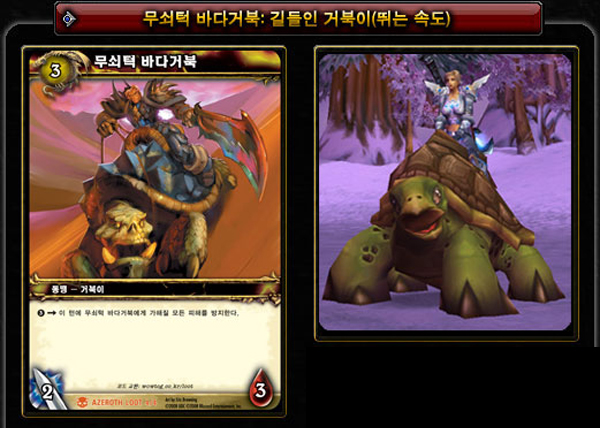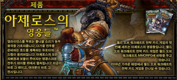 해외에서는 진작부터 활성화되어 국내 플레이어들의 부러움만 샀던 TCG와 보상들을 이제 국내에서도 만나볼 수 있게 되었습니다. 물론 플레이어들의 주머니를 탈탈 털어가버릴 지도 모르지만, TCG를 즐겨오던 와우저라면 한 번 쯤은 접해볼 만 하고 그렇지 않은 분이라 해도 이번 기회를 통해 TCG를 배워 보는 것은 어떨까요? 저 역시 한동안 다른 TCG를 접했었지만 오랜만에 보는 카드들이고 방식도 달라서 기사를 작성하면서 공부하는 느낌이었습니다. 보다 쉽고 간결하게 설명드릴 수 있었을텐데 하는 아쉬움이 드네요. 와우를 사랑하고 TCG에 관심있는 분들께 작은 도움이 되었으면 좋겠습니다. |