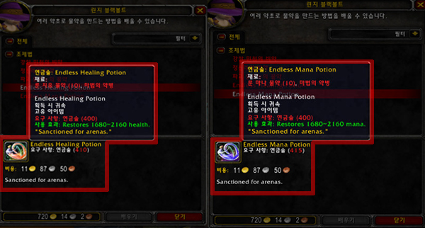 사실상 연금술은 특화된 장점이 별로 없었기 때문에 유저들의 원성을 많이 샀던 전문기술 중 하나였습니다. 리치 왕의 분노 패치를 통해서 좀 더 유용한 전문기술로 거듭났으면 좋겠군요.