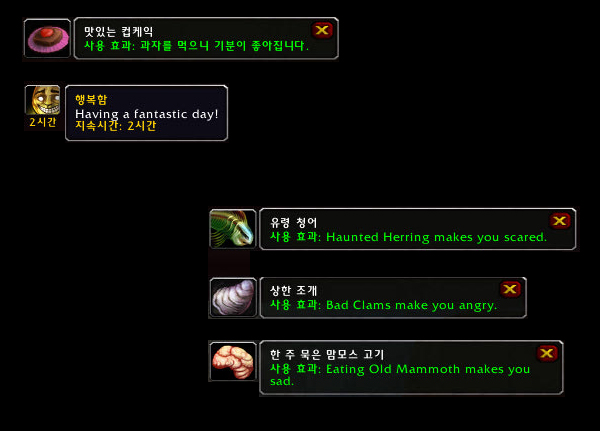 오리지널 때에는 별다른 효율을 보이지 못하다가 불타는 성전에서부터 "필수 도핑"중 하나로 인정받기 시작한 요리. 리치 왕의 분노에선 더욱 다양하고 강력한 효과를 보여주게 됩니다. 특히 일일 퀘스트를 통해 얻은 토큰으로 구입할 수 있는 조리법은 요리의 거장에게서 배우는 요리들보다 뛰어난 효과를 보여주어서 더욱 인기를 끌 것으로 예상되는군요.