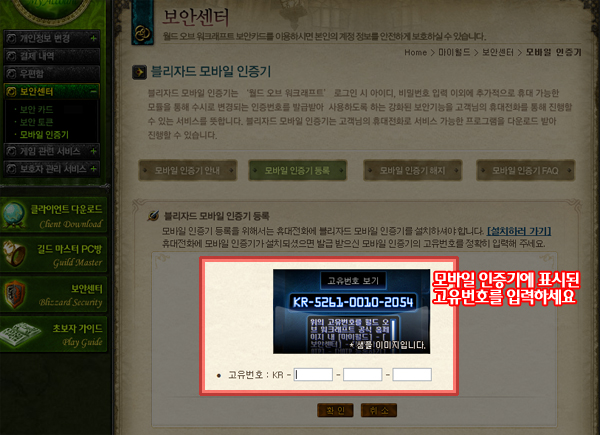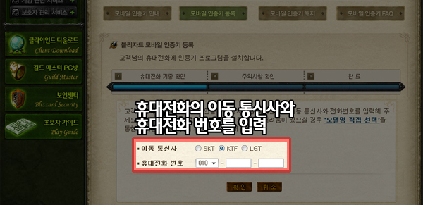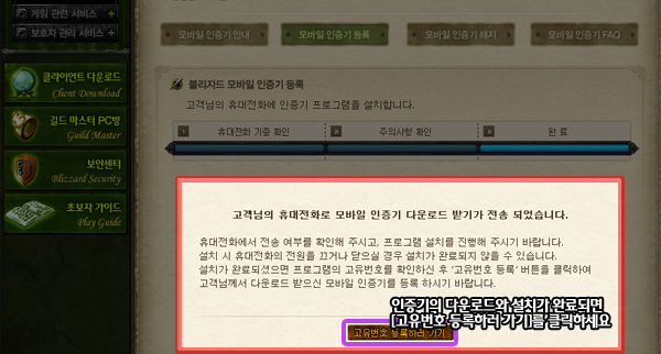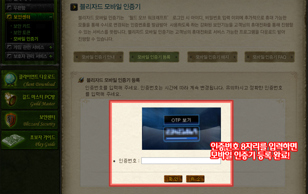 인증기 등록 및 프로그램 다운로드는 블리자드 모바일 인증기 페이지에서