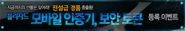 블리자드에서는 모바일 인증기 서비스의 개시와 함께 공식 이벤트를 시작했습니다. 보안 토큰과 모바일 인증기 서비스를 등록하면 지금까지 볼 수 없었던 놀라운 상품 획득의 기회가 제공되니 꼭 참여하세요!